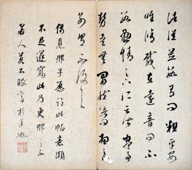 董其昌书法,天姿迥异。其清秀圆润之致,弥散于褚墨间,此非董氏以后诸家所能及也。每于若不经意处,丰神独绝,如清风飘拂,微云卷舒,颇得天然之趣。观其结构字体,皆源于晋人。盖其生平多临《阁帖》,于《兰亭》、《圣教》,能得其运腕之法,而转笔处古劲藏锋,似拙实巧。《闲窗论画》为董其昌自书画论。董其昌书画论皆以晋人口吻挥尘而谈。此册页内容为董氏画学心得之秘。书风结体内敛,娟洁秀丽,优雅出尘,允为董氏晚岁心手双畅之作,堪称神品。