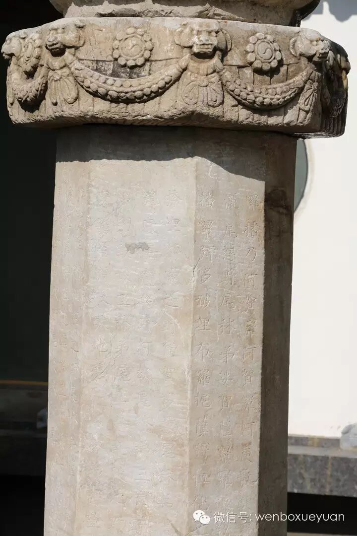 经幢的由来,根据《佛顶尊胜陀罗尼经》中说:佛告天帝,若人能书写此陀罗尼,安高幢上,或安高山,或安楼上,乃至安置窣堵波中……若有苾刍、苾刍尼、优婆塞、优婆夷、族姓男、族姓女,于幢等上或见,或与幢相近,其影映身,或风吹陀罗尼上幢等尘落在身上、彼诸众生所有罪业,应堕恶道、地狱、畜生、阎罗王界、阿修罗身恶道之苦,皆悉不受,亦不为罪垢染污。